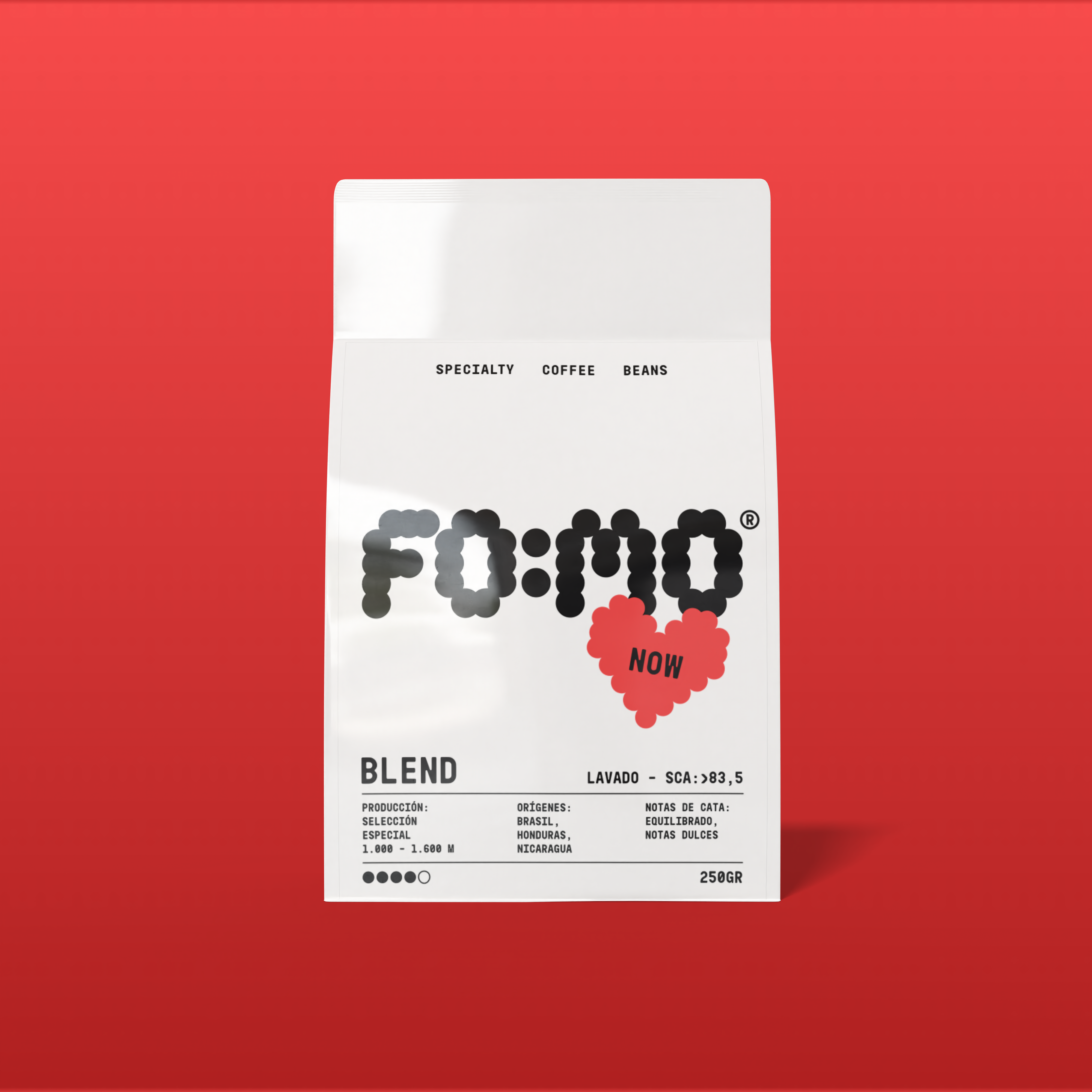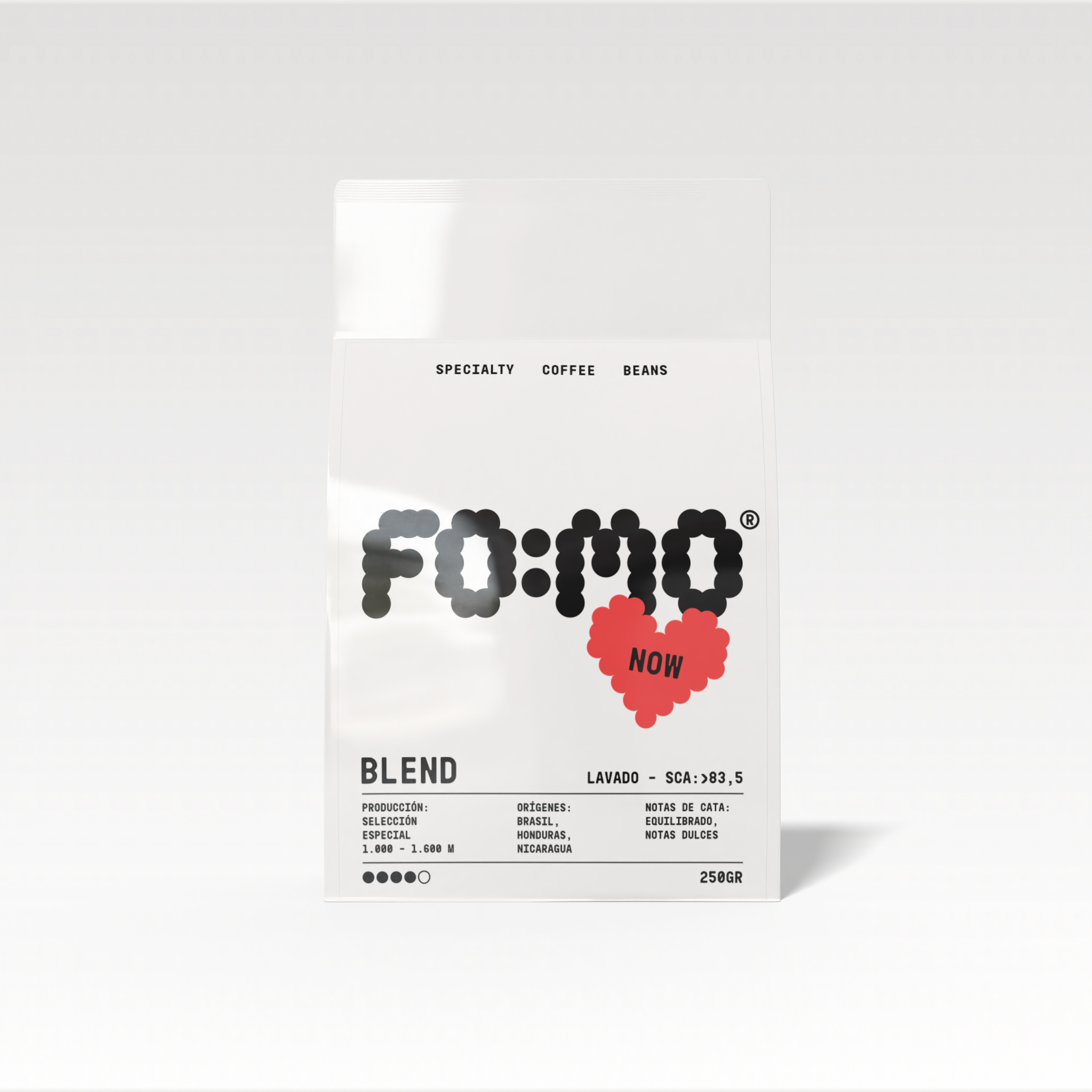 NOW Blend es la creación exclusiva de FOMO Coffee, un blend único que combina lo mejor de tres orígenes excepcionales: Brasil, Honduras y Nicaragua. Cada grano ha sido seleccionado cuidadosamente para ofrecer una taza rica y equilibrada, con un perfil de sabor que combina la suavidad y dulzura de Brasil, la complejidad de Honduras y el toque vibrante de Nicaragua.